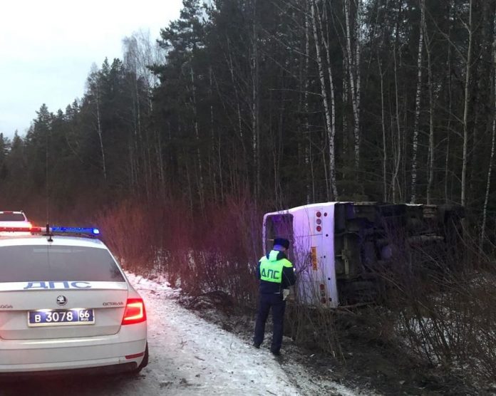 ДТП произошло утром 14 ноября. Водитель автобуса №107 «Первоуральск-Кузино» выбрал небезопасную скорость и не учел состояние дорожного покрытия, в результате автобус съехал в кювет и перевернулся. В салоне находились 7 пассажиров. Медицинская помощь потребовалась одной пассажирке, — сообщили в региональной Госавтоинспекции. Водителю автобуса 44 года, его стаж вождения по категории D — 1 год. Проведено освидетельствование, водитель в момент аварии был трезв.